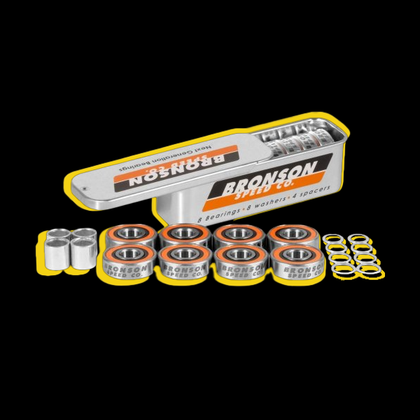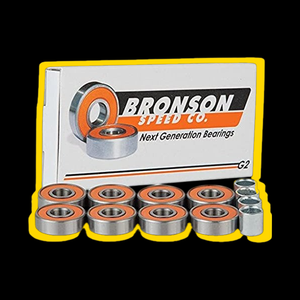 Os rolamentos Bronson Speed Co. G2 apresentam rails bastante profundos que são perfeitos para reduzir os danos nos rolamentos devido ao impacto lateral e, portanto, reduzem a probabilidade dos rolamentos se partirem ao saltar sobre escadas ou outros obstáculos na rua, além de serem uma opção acessível. Também vêm pré-lubrificados com o óleo cerâmico de alta velocidade de Bronson para ajudar a reduzir o desgaste e aumentar a velocidade.