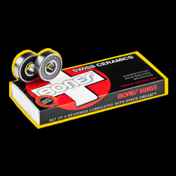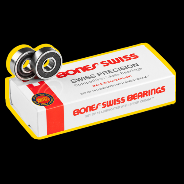 Os rolamentos da Bones Swiss são concebidos para serem rápidos e duráveis. Vêm pré-lubrificados com Lubrificante Speed Cream Racing e, de acordo com muitos skaters, os rolamentos Bones Swiss podem durar anos se tiverem uma manutenção adequada.