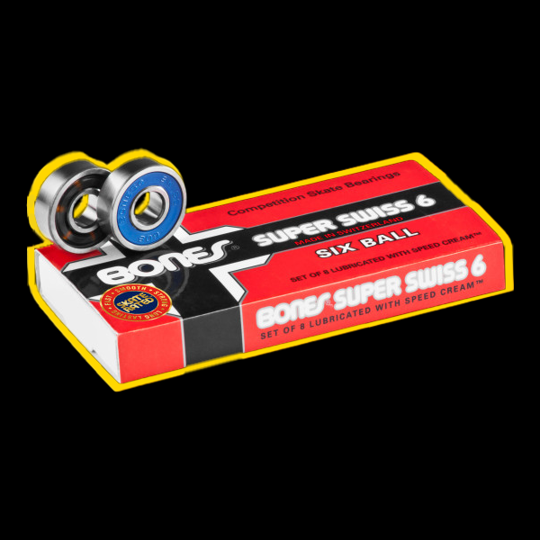 Os rolamentos de skate Bones Super Swiss 6 são uma versão melhorada dos clássicos Bones Swiss. A principal diferença entre os dois é que os rolamentos Super Swiss 6 têm seis esferas grandes em vez das sete clássicas.
