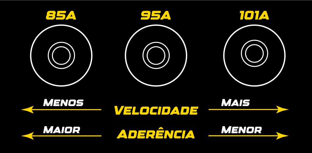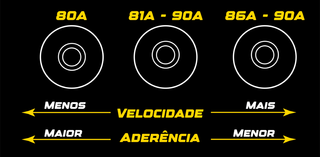 - 81A – 90A → Rodas intermediárias a duras, facilitam os slides sem perder totalmente o controlo.