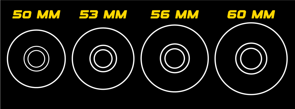 - 60-65mm → Rodas menores aceleram rápido e iniciam slides com mais facilidade.