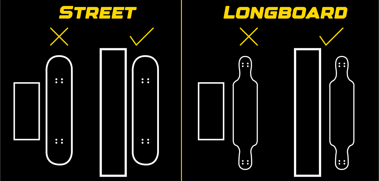 10.0″ x 42″ → Máximo conforto e espaço para os pés, ideal para skaters maiores
