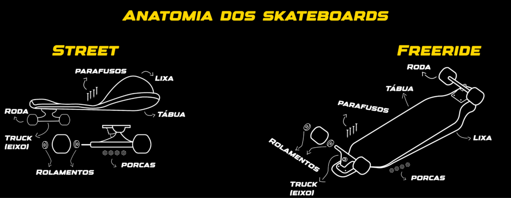 Para freeride, os trucks reverse kingpin (RKP) são os mais indicados. Eles oferecem mais estabilidade e resposta em altas velocidades, além de facilitar as derrapagens.
