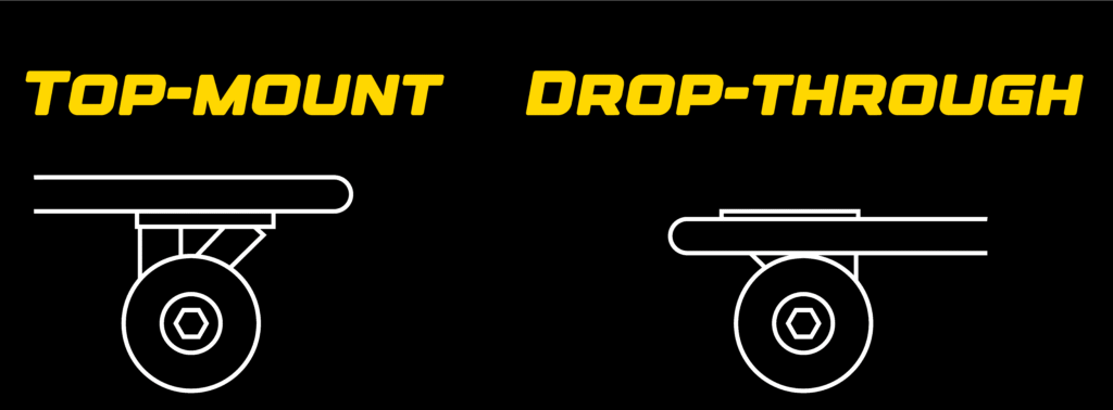 Os longboards top-mount são fixados diretamente na parte inferior da tábua. Isso dá ao skater mais capacidade de curva para curvas agressivas e mais fechadas. Como as pranchas top-mount ficam mais altas do chão, oscilações de velocidade podem se tornar um problema. Os skaters podem adicionar mais estabilidade usando diferentes amortecedores, trucks e rodas.