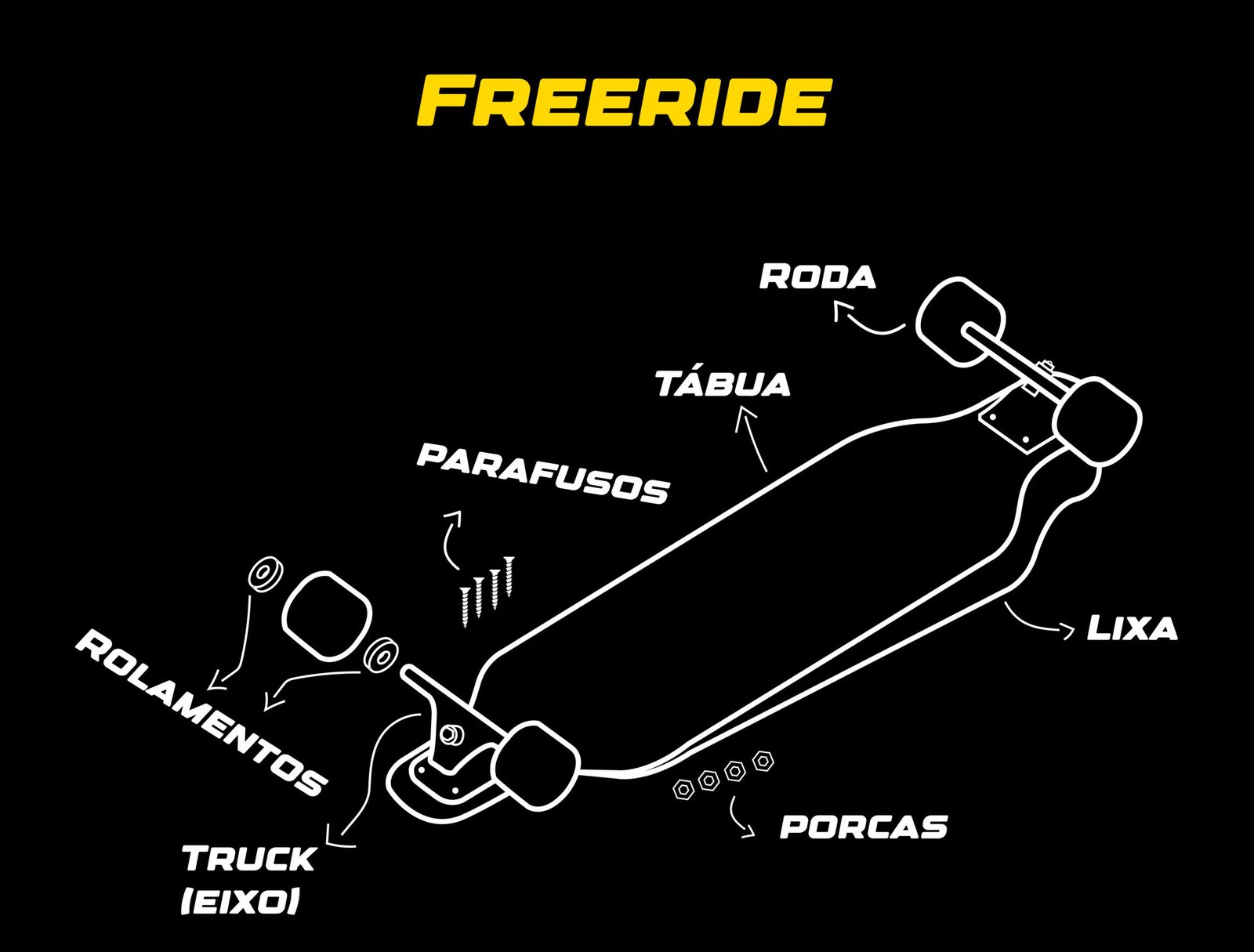 Os que seguram os trucks à tábua, que podem ser tipo phillips (estrela) ou allen (hexagonais).