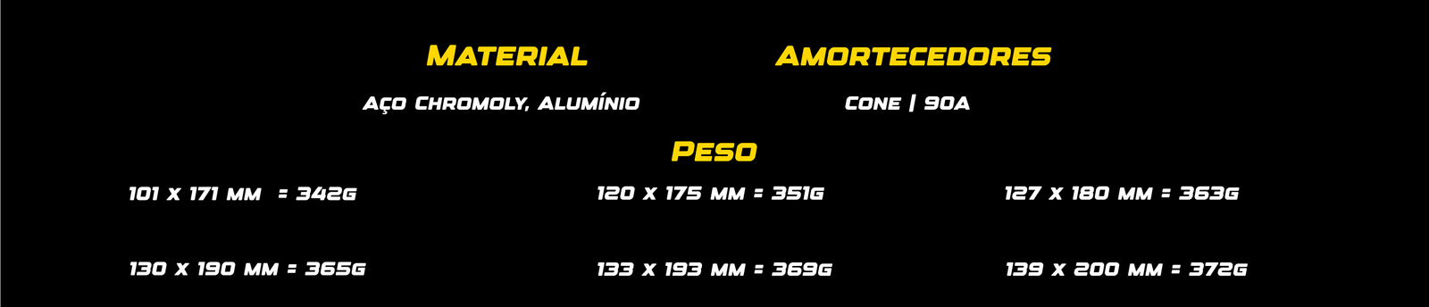 | Largura | 101 x 171 mm, 120 x 175 mm, 127 x 180 mm, 130 x 190 mm, 133 x 193 mm, 139 x 200 mm |